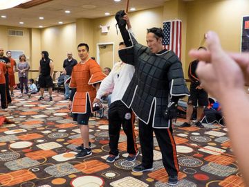 In the San Miguel System of Eskrima, Nong Momoy's Orihinal Disciples -- Depensa Seguidas Group (NMODE--DSG), a part of Eskrima Combatives FMA, Magtutudlo Ramon Rubia would like to recognize Dennis Batucal, Ed Wedding, Tim Suehiro, Ramil Agustin, and Luis Tuparan. Photo taken at the Eskrima Combatives FMA 1st Annual Christmas Family Gathering on December 28th, 2014. Not pictured, Jose Diaz Jimenez from Spain.